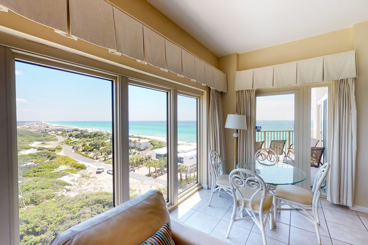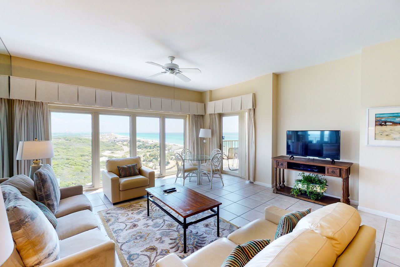 TOPS'L Beach Manor 805 by The Tops'l Lodging Company is a spacious two-bedroom, two-bath beachfront condominium offering sweeping Gulf views and a refined coastal retreat within an elegant resort setting. Designed for comfort and relaxation, this residence provides an inviting escape where the shoreline becomes part of your everyday view.