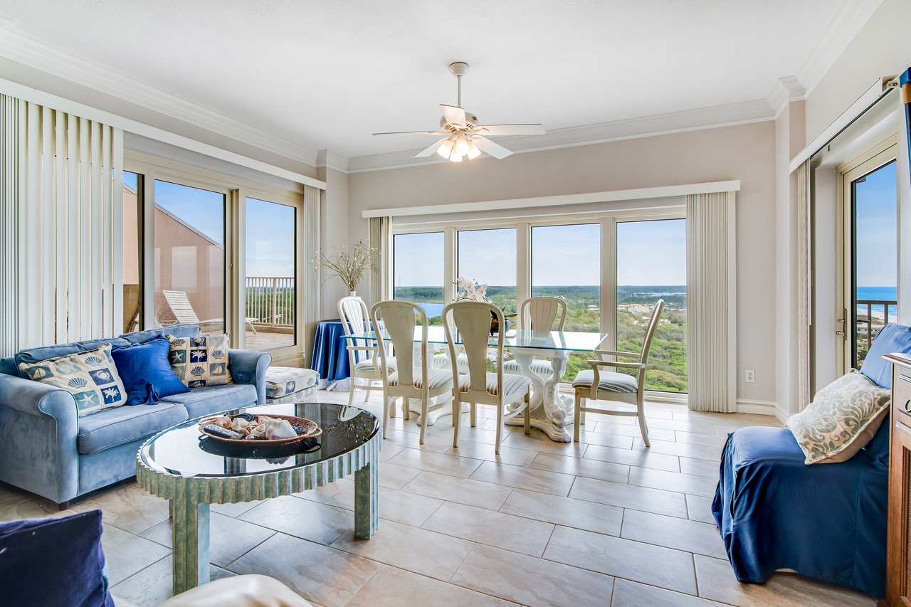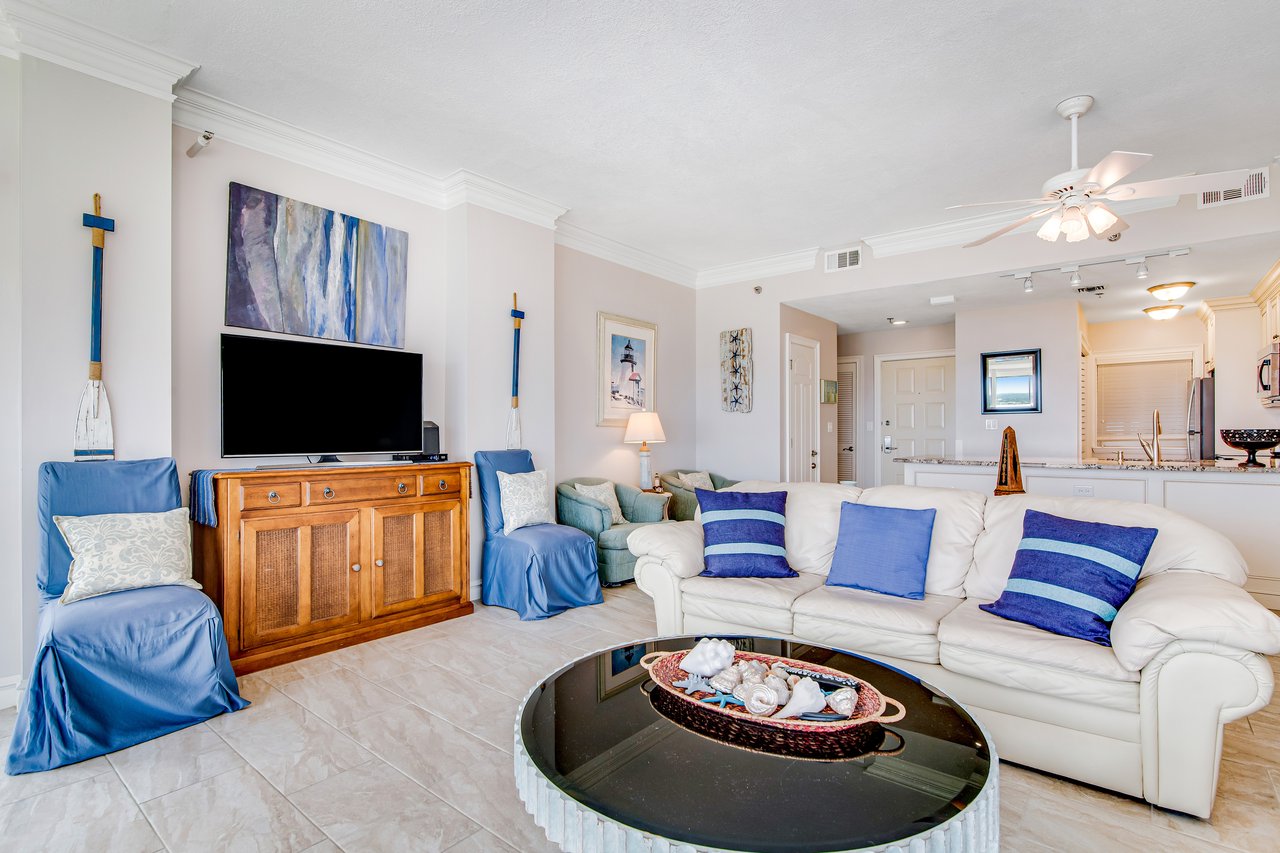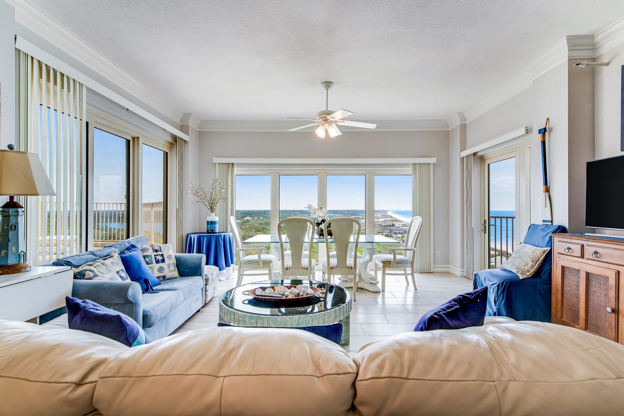 TOPS'L Beach Manor 1205 by The Tops'l Lodging Company is a stunning three-bedroom, three-bath Gulf-front villa offering sweeping water views and an elevated beachfront resort experience. Designed for comfort and connection, this spacious residence features two private balconies that invite you to take in the sights and sounds of the shoreline from sunrise to sunset.