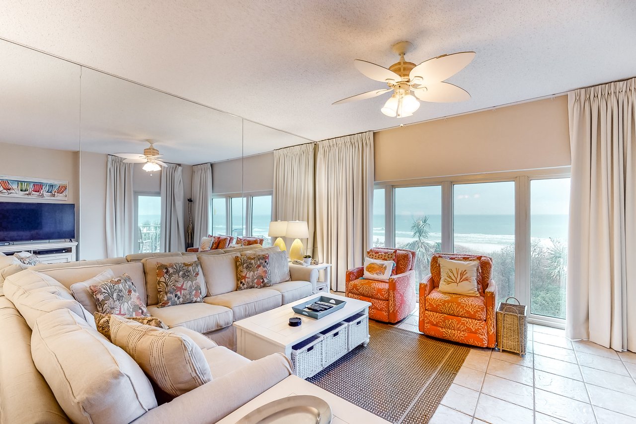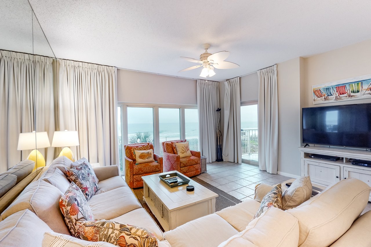TOPS'L Beach Manor 311 by The Tops'l Lodging Company is a bright beachfront 2-bedroom, 2-bath condominium with beautiful Gulf views and not one, but two private balconies, perfect for savoring sunrise coffee, salty breezes, and sunset skies. Spacious and inviting, this coastal retreat blends comfort and resort-style ease for a stay that feels instantly relaxing.