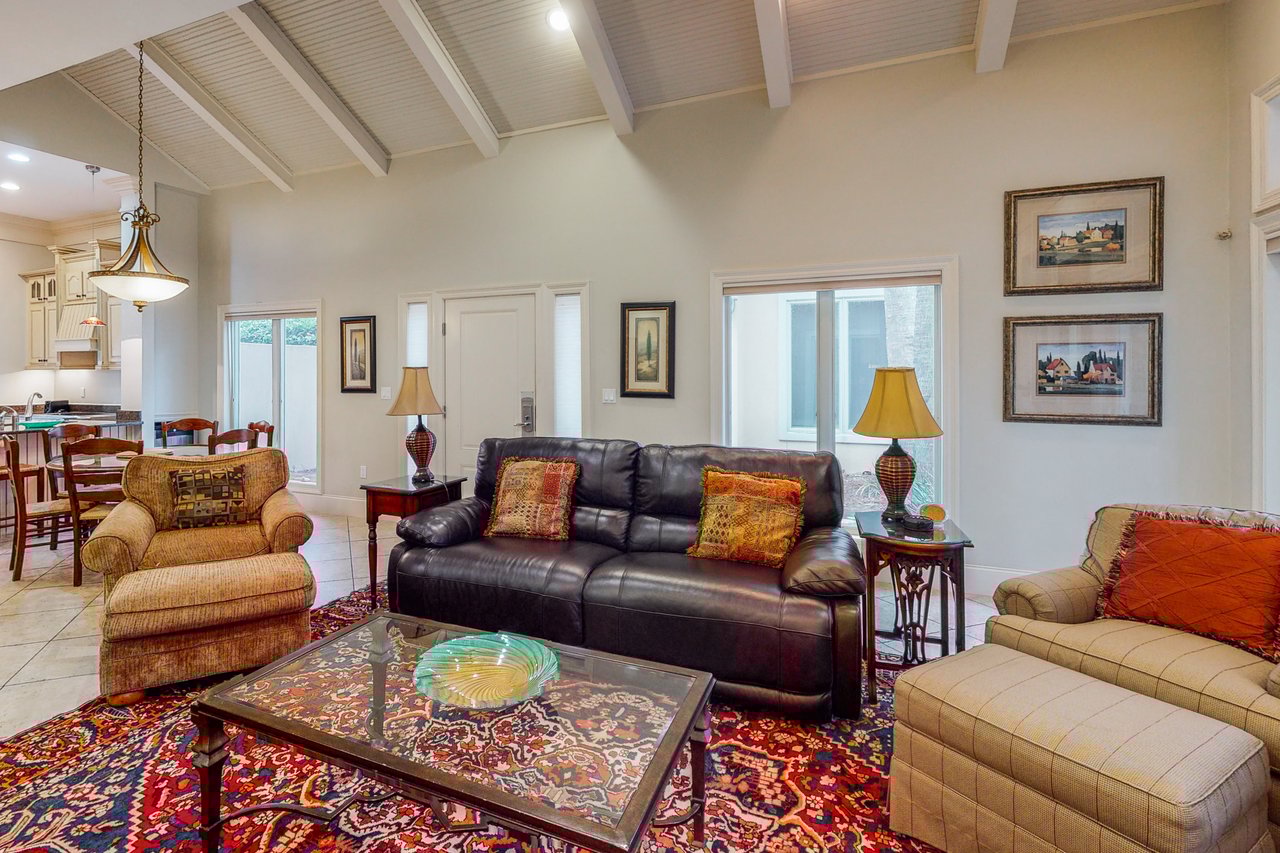 Inside, natural light fills the inviting living spaces, creating an easy flow for relaxing after sun-soaked days. The fully equipped kitchen, complete with stainless steel appliances and generous prep space, makes it simple to gather for everything from casual breakfasts to memorable dinners. Enjoy meals together at the dining table, or step outside to the private patio for al fresco dining and laid-back evenings in the coastal air. With in-home laundry and thoughtful conveniences throughout, your stay feels polished, seamless, and truly comfortable.