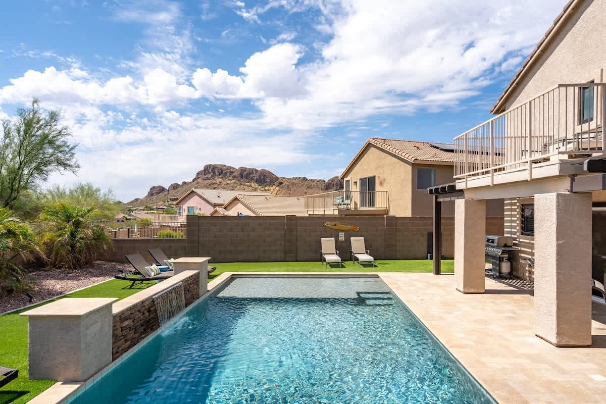 Welcome to our private escape in Gold Canyon City near Superstition Mountain! This beautifully updated property is the perfect retreat for family gatherings, golf trips, or just a relaxing getaway. Surrounded by many golf courses, you have a golfer's paradise. The breathtaking backyard has spectacular mountain views. Enjoy the luxurious setting complete with a heated pool, hot tub and lounging space. (+$50/night for pool heat - please request at least one week before arrival) The home itself has 4 bedrooms and 2.5 bathrooms, plus thoughtful design touches throughout.