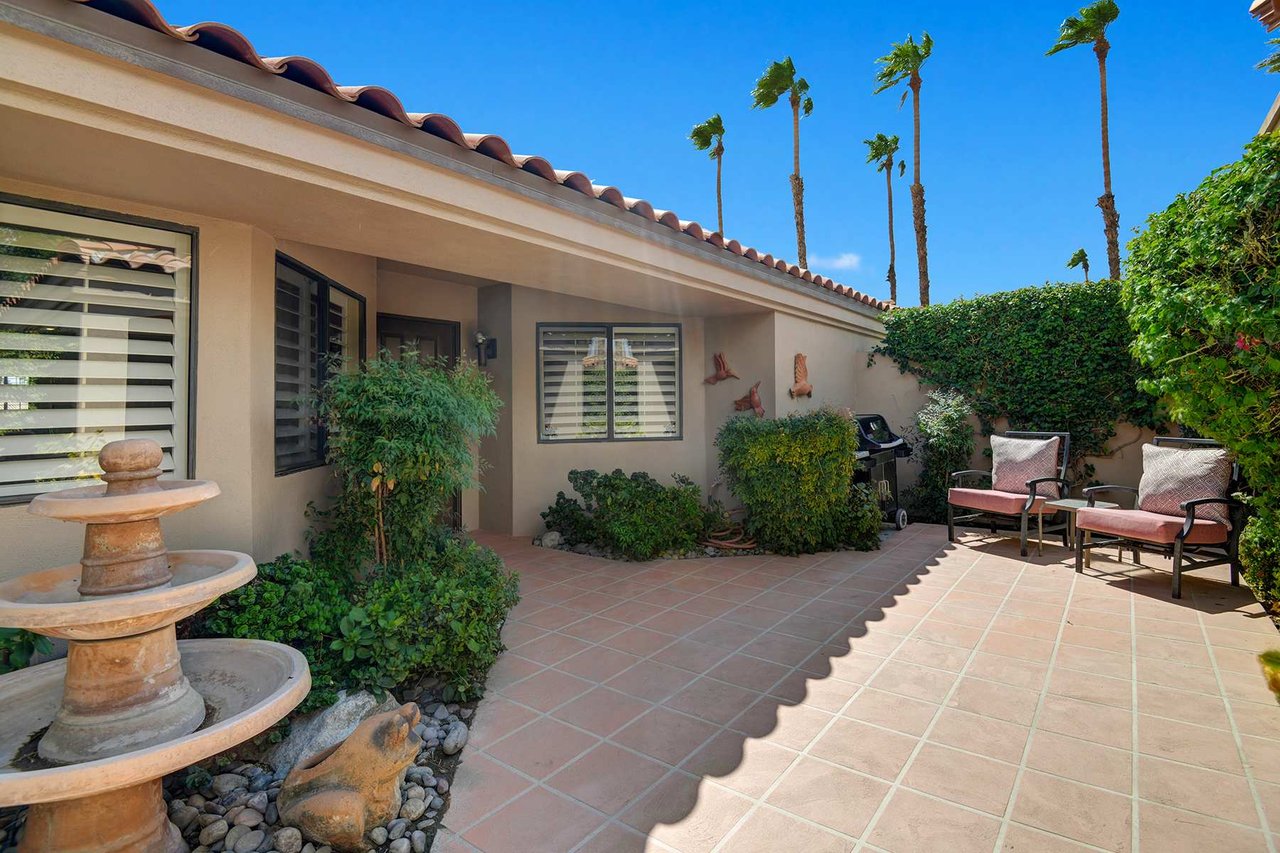 Enjoy the perfect desert retreat in this beautifully updated Palm floor plan home featuring 2 bedrooms, 2 bathrooms, and a family room with approximately 1,550 sq. ft. of comfortable, single-level living. This end unit offers elevated fairway views from your private patio, creating a peaceful setting for morning coffee or evening sunsets.
