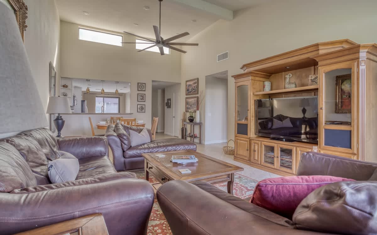 When it’s time to relax, the pool and spa are just steps away, offering the perfect spot to soak up the sun and unwind. Located in the heart of Palm Valley Country Club, this vacation rental combines resort-style amenities with all the comforts of home.