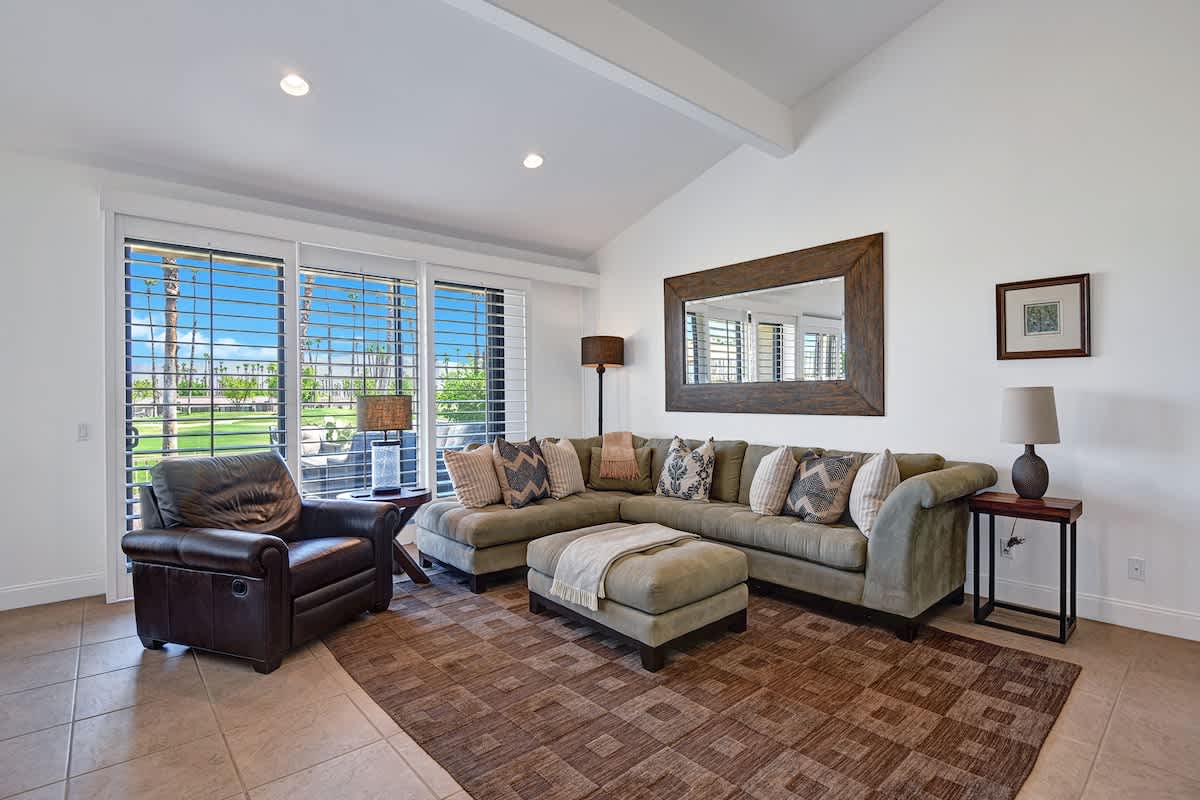 The back patio has a dining table, built-in BBQ grill, and plenty of lounge seating, all overlooking the fairway and mountains providing beautiful vistas as the light changes throughout the day. A community pool / spa is just a short walk away. There is also a full size private laundry room in this unit, and a private 2 car garage for your convenience.