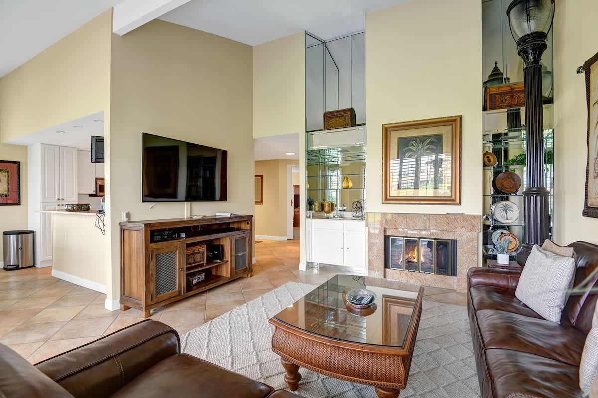 This open and spacious 2 Bedroom, 2 Bath plus den Cottonwood is the perfect Palm Desert getaway. It has been tastefully furnished and offers all that you can ask for in a vacation rental. The living room has plenty of seating for you and your guests to sit around the fireplace and watch your favorite sporting event or movie around the large TV. For the chef in your group, the fully remodeled and well stocked kitchen with updated appliances will make cooking a breeze! And when the weather is right, you can enjoy dining al-fresco on the patio with beautiful views of the fairway and lake.