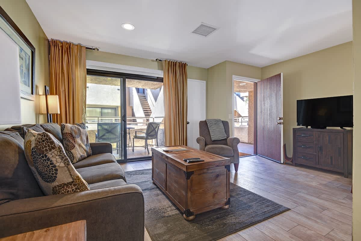 Guests at Biarritz enjoy access to a range of amenities, including a sparkling heated pool and spa, tennis courts, covered parking, and beautifully maintained grounds. Whether you’re looking to unwind poolside, stroll through downtown’s shops and restaurants, or take in the nearby hiking trails and golf courses, this home offers the ideal base for your desert stay.