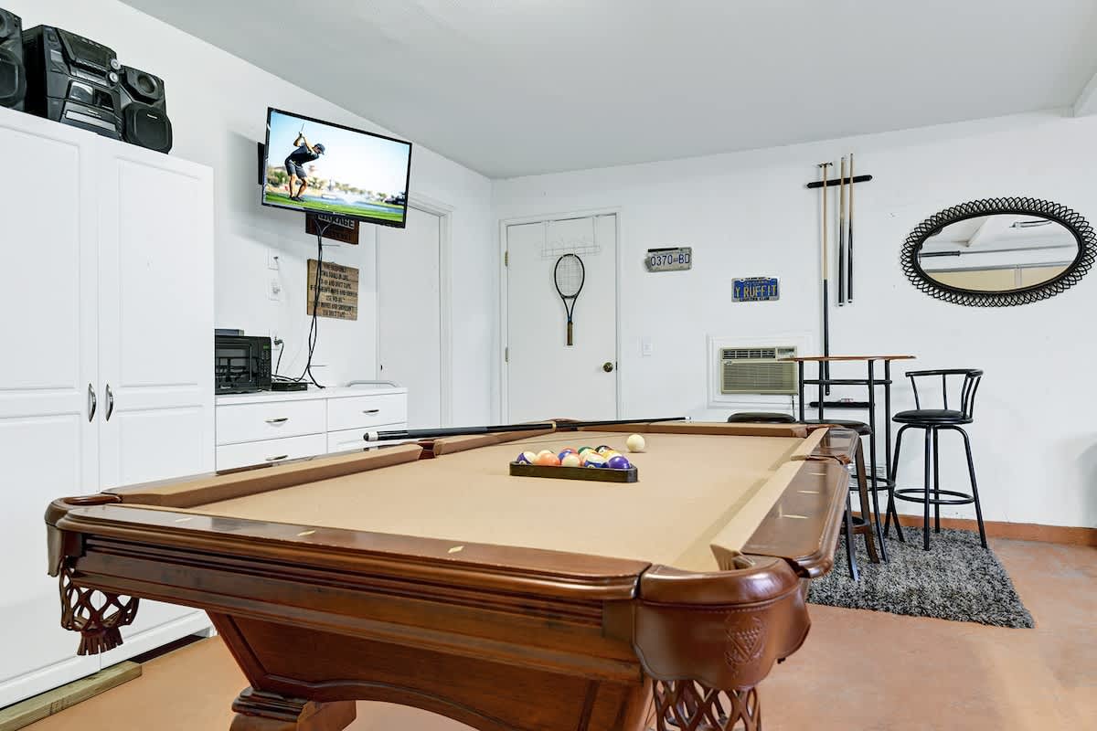 Vintage Model - 2BR/2BA - 1177 sq. ft. Reach out and touch the pool like it is in your back yard! With a brand new BBQ, you will be in the most popular unit in the neighborhood! 2 Master suites with installed pocket doors allow for entertaining in the living room while others nap or watch their own private flat screen shows in the bedrooms. Both master bathrooms are renovated with large walk-in showers with stone seating, making showers easy and comfortable. New furniture, ceiling fans, thick bedroom carpeting with cool tile elsewhere is very welcoming. A fully renovated kitchen and eating area with recess lighting is sure to please. Definitely a game room unit, including an ottoman in the living room with 4 pull out chairs for playing board games or cards. A desk and other flat surfaces roomy for laptops, etc. A huge flat screen 60"" compliments this room of entertainment! Want more? Step out to the garage where there is a 4th flat screen TV AND a pool table! This unit is available ALL YEAR ROUND! You will DEFINITELY come back to stay here! Free Wifi. License #STR2023-0333